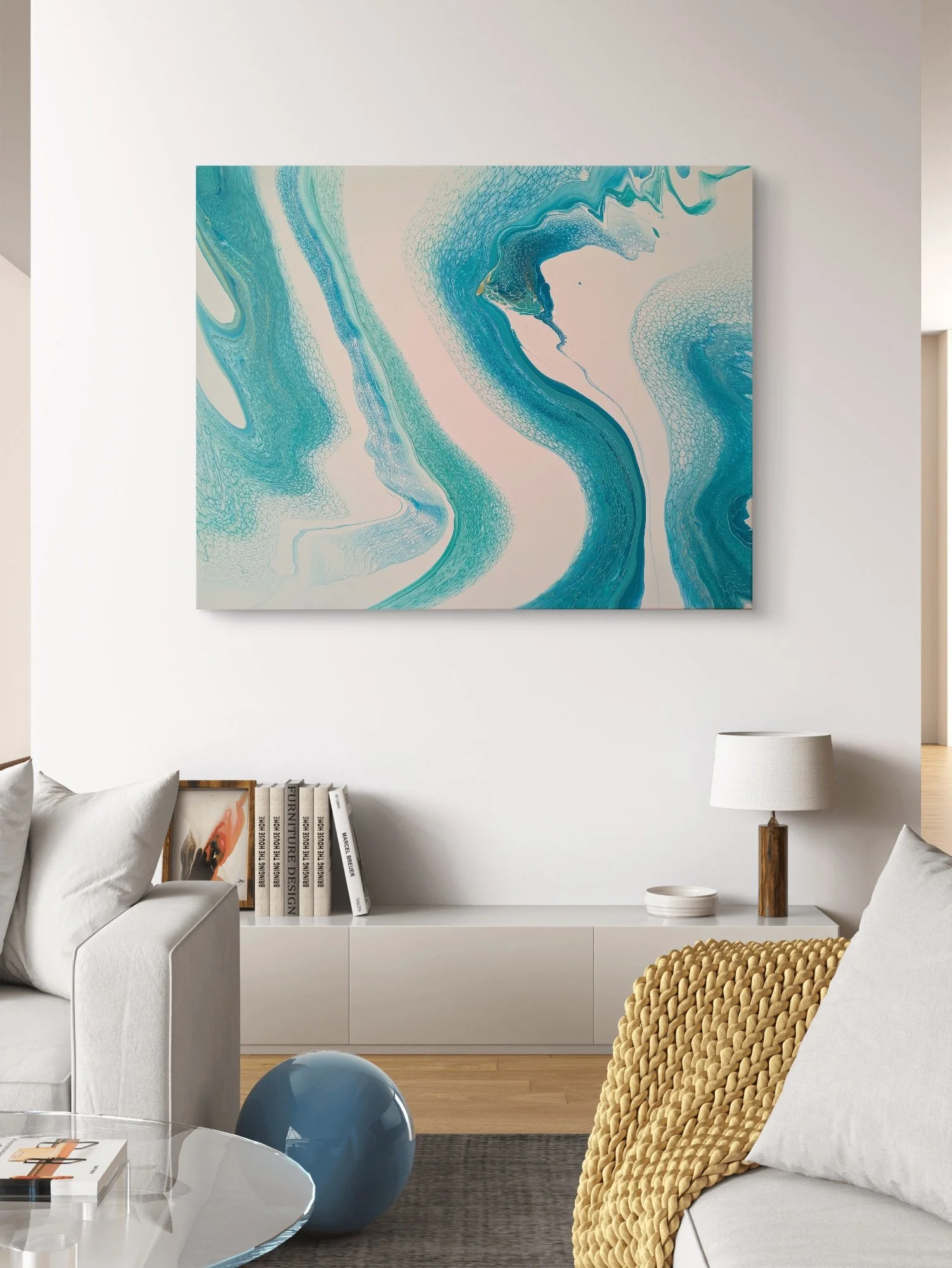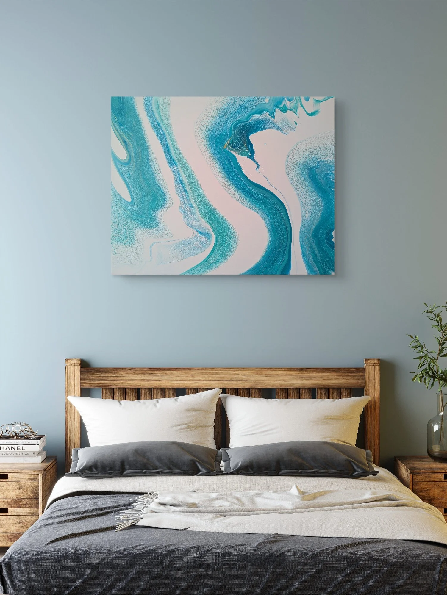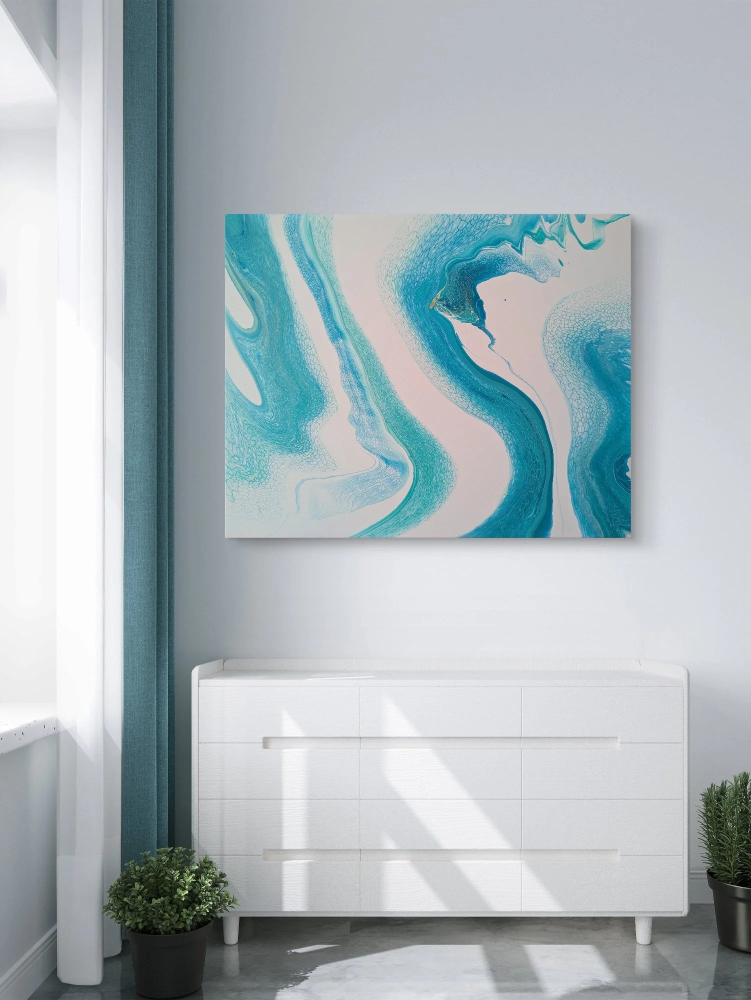 Acrylics on canvas, finished with a gloss varnish. Comes ready to hang.