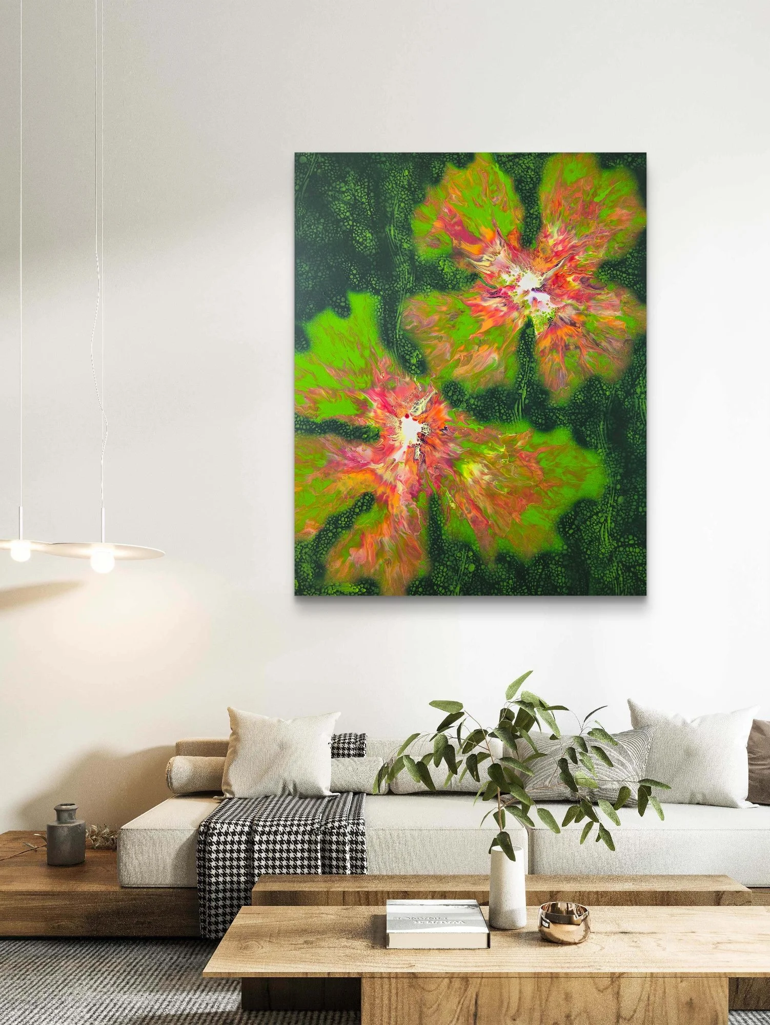 Instead of giving up, I returned to the canvas again and again, layering, reworking, and reshaping the composition. Through this process, the piece evolved into something unexpected: a dynamic interplay of organic forms and flowing energy — a little like “Matrix meets flowers.”